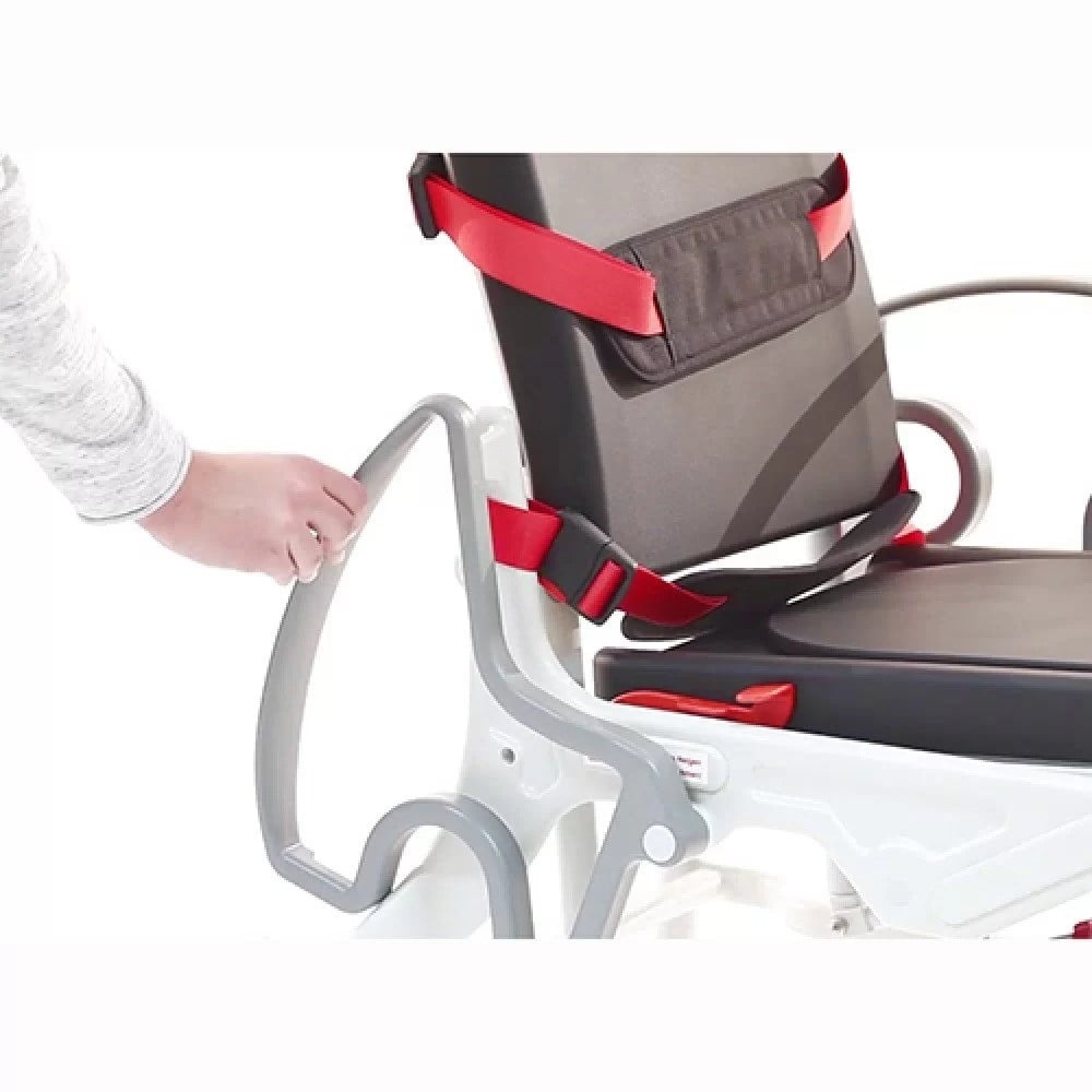 مسند لليد قابل للارتفاع أو للطي للخلف مما يتيح نقل المريض عن طريق سحبه من الكرسي دون الحاجة لحمله.