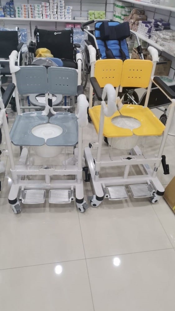 -كرسي سحب مريض من على السرير مع تغيير ارتفاع الكرسي بسهولة ,ليتناسب مع ارتفاع السرير وارتفاع كرسي الحمام.