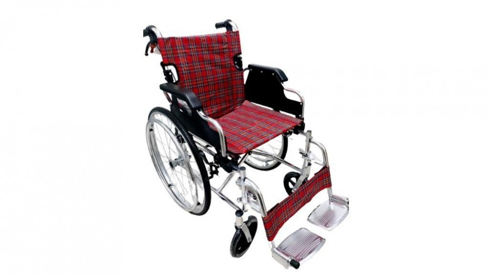 - اللون - قماش أحمر ، إطار كروم ، إطارات عجلات سوداء
